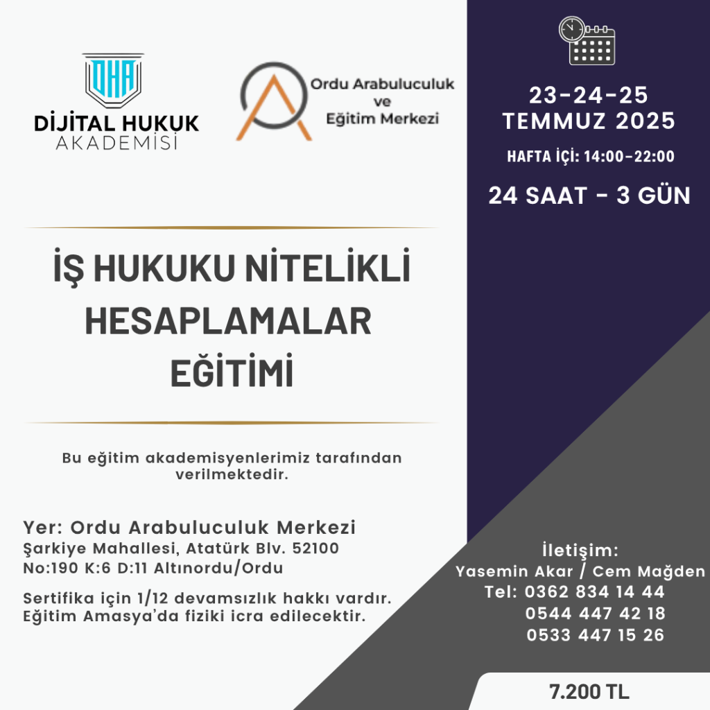 İş Hukuku Nitelikli Hesaplamalar Eğitimi – Ordu